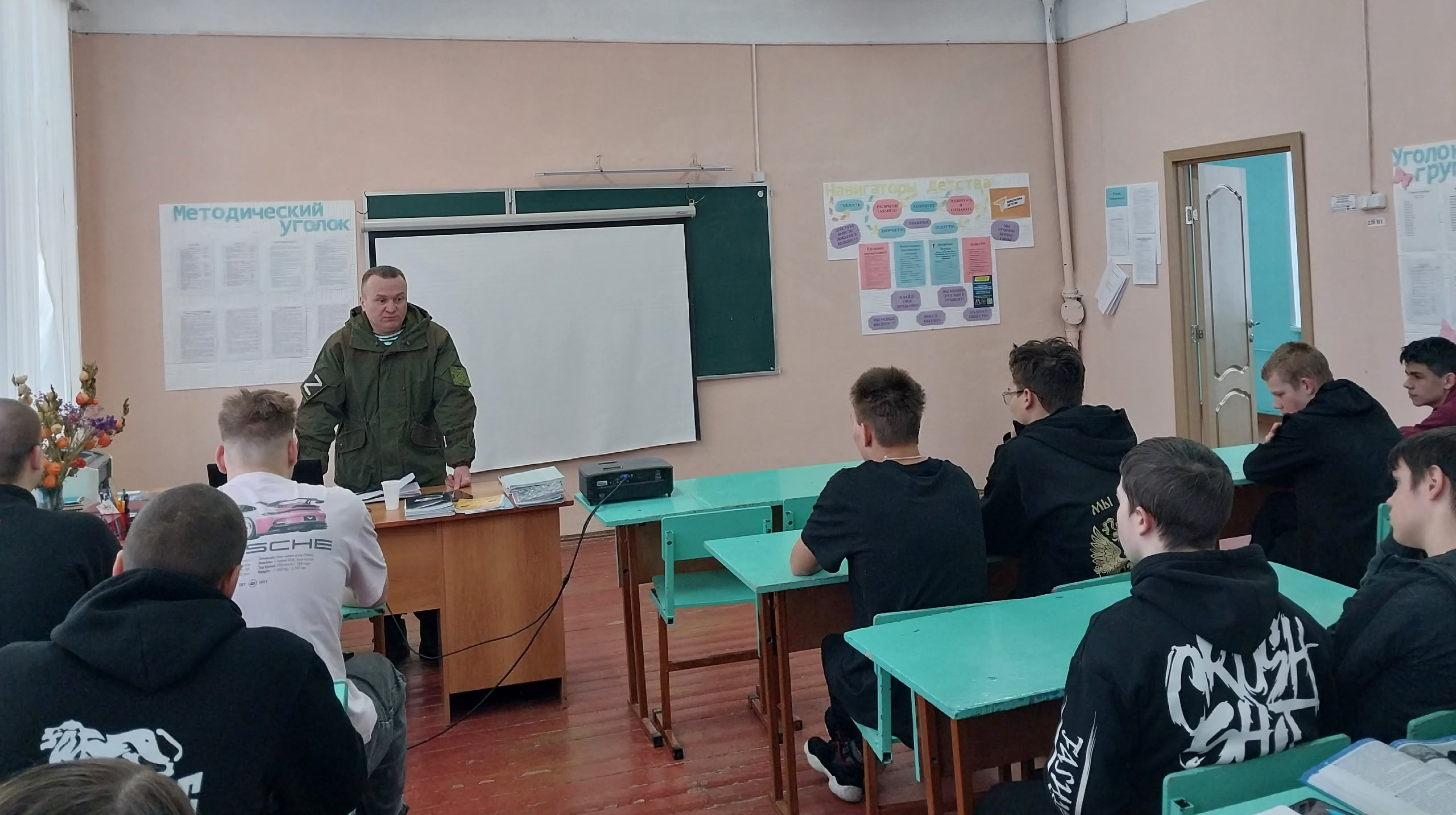 В ходе встречи, Алексей Николаевич, рассказал ребятам о мотивации своего решения идти на защиту своей страны, о истории своего боевого пути, о взаимовыручке и важности моральной поддержки из дома. В завершении встречи, ребята почтили минутой молчания героев, погибших в ходе СВО.