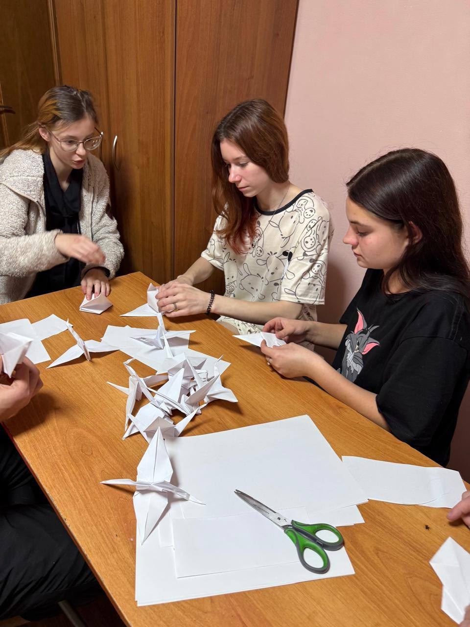 Для студентов, проживающих в общежитии был проведен мастер-класс по изготовлению "Белых журавлей", активом студенческого самоуправления была проведена акция "День белых журавлей". Пусть белые журавли станут символом нашей общей надежды на мирное будущее. Помните: история учит нас быть более человечными и заботливыми друг к другу.