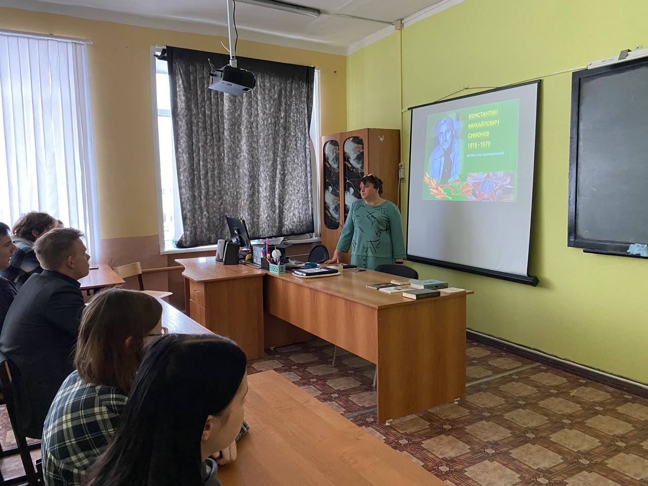 2025 год является юбилейным для выдающегося писателя и поэта К. М. Симонова. Библиотекарем колледжа был проведён информационный час, посвящённый творчеству, жизненном пути и известным произведениям поэта. В ходе мероприятия обучающиеся расширили свои литературные знания и прослушали аудиозаписи знаменитых стихотворений в исполнении автора.