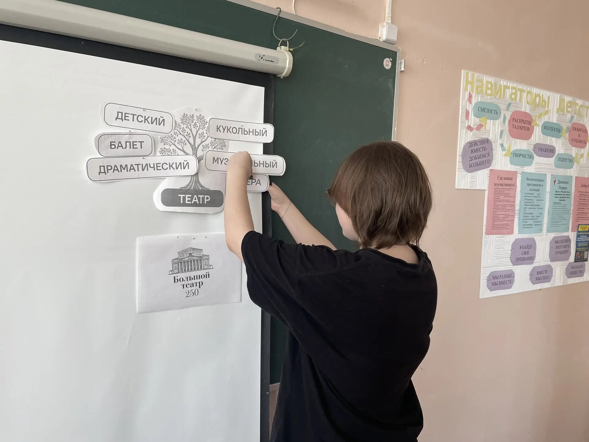 Цель занятия: расширение представлений об истории и значении Большого театра как национального достояния России и символа ее культурного могущества; раскрытие значения профессиональных сообществ в сохранении и развитии театральных традиций; формирование чувства гордости за достижения отечественной культуры, понимание ее уникальности и мирового признания; мотивация к участию в школьной театральной деятельности как пространстве для творческой самореализации и созидательного труда. Занятие проходило в форме познавательной беседы с просмотром видеоматериалов, выполнения интерактивного и практического занятия.