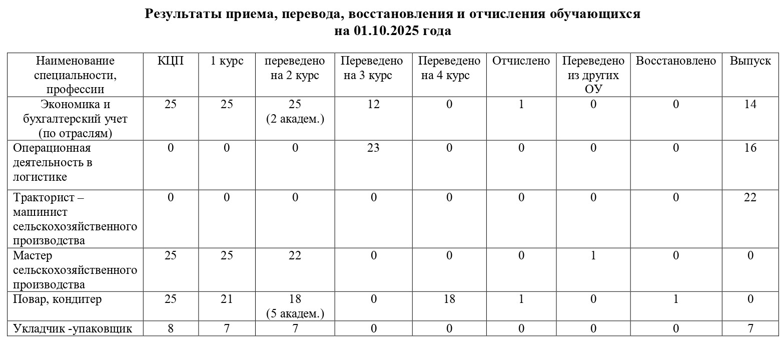 Результаты приема, перевода, восстановления и отчисления обучающихся на 01.10.2025 года